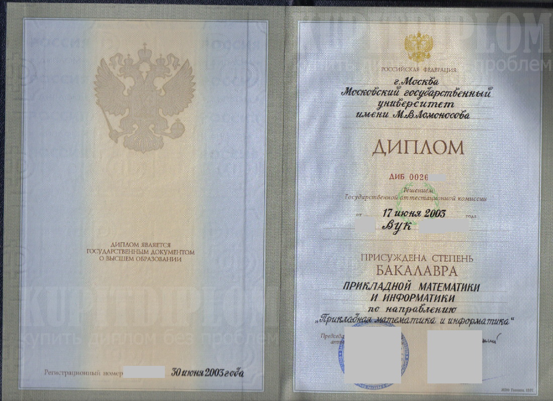 Диплом иностранца полученный в лучшем ВУЗе Российской Федерации в 2003 году. От обычного бланка отличается размером корочки (больше) и серией.